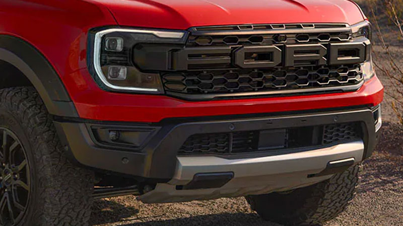 Điểm nhấn then chốt phần đầu xe là chữ Ford được thiết kế dạng khối nổi cỡ lớn. Đèn LED ma trận nổi bật trong đêm, cản trước bắt thẳng vào khung xe và tấm hợp kim chắn gầm siêu cứng, tất cả đều như đang sẵn sàng mở đường dẫn lối.