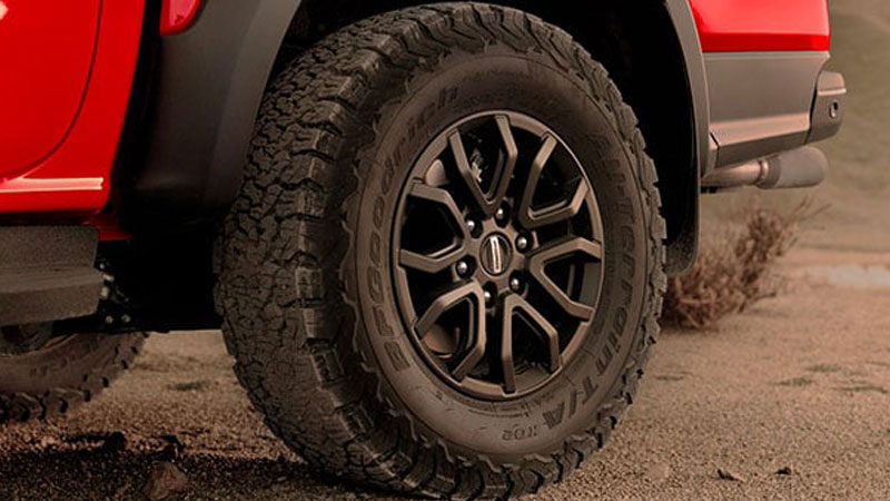 Bộ la-zăng hợp kim 17 inch hầm hố dành cho đường địa hình lắp với lốp xe BF GoodRich All-Terrain K02 hiệu năng cao danh tiếng (kích thước 285/70 R17). Dù vượt núi đồi hay chạy tốc độ cao, đều đáp ứng trong mọi điều kiện.