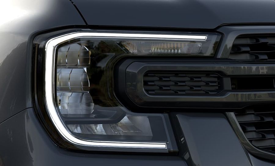 Các điểm nhấn tối màu hiện đại kết hợp với lưới tản nhiệt phía trước tối màu tạo nên vẻ ngoài thể thao hơn. Đèn pha LED dạng hình chữ C đậm chất Built Ford.